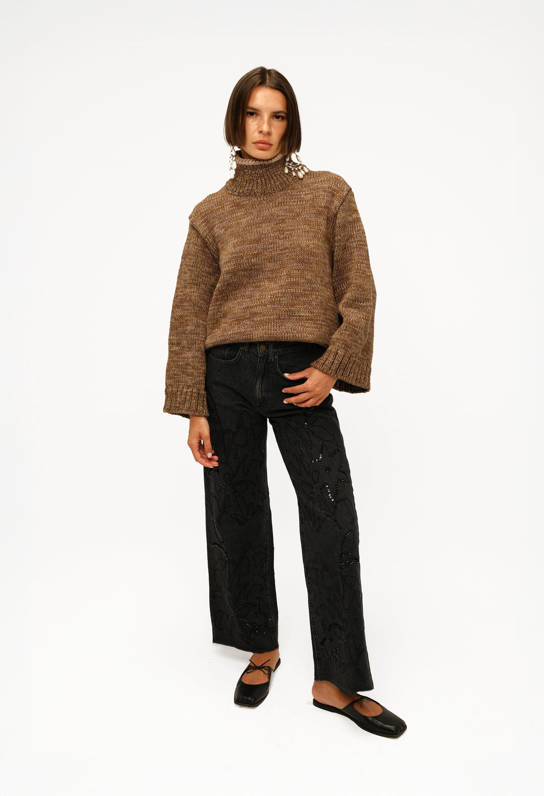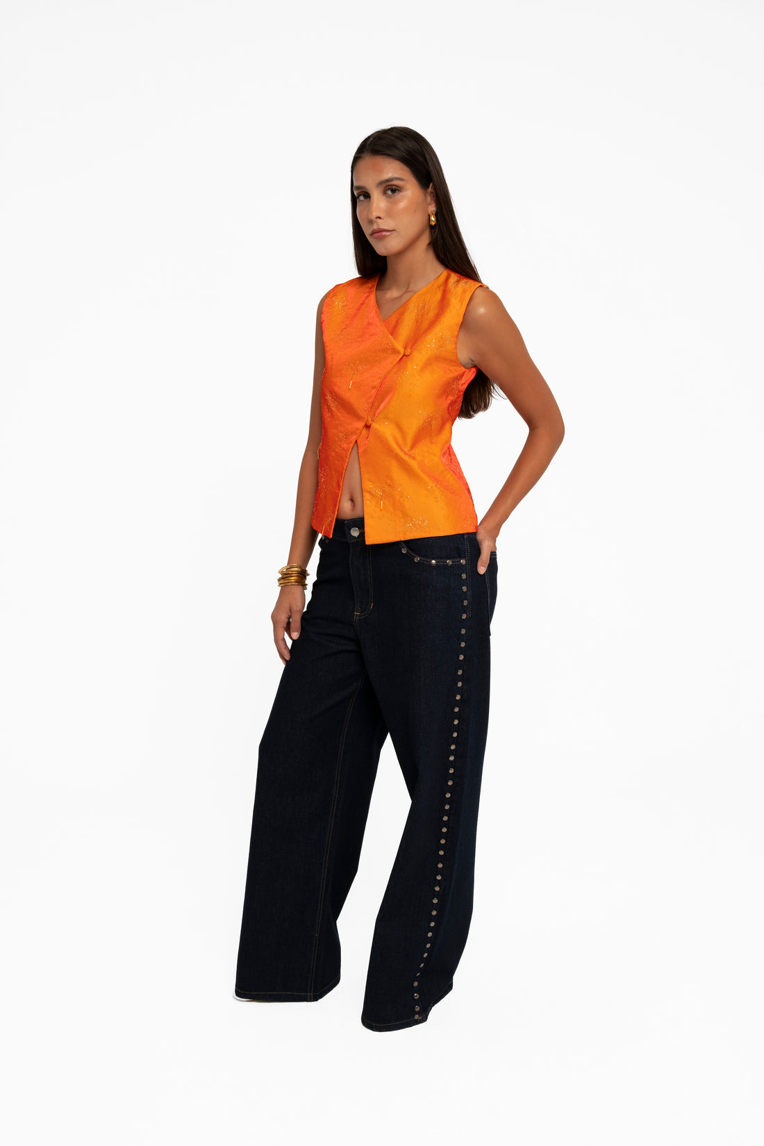 The perfect blend of timeless style and careful handwork, our dark denim studded pants are...