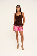 GLEAM SILK TAFFETA SHORTS IN FUSCHIA