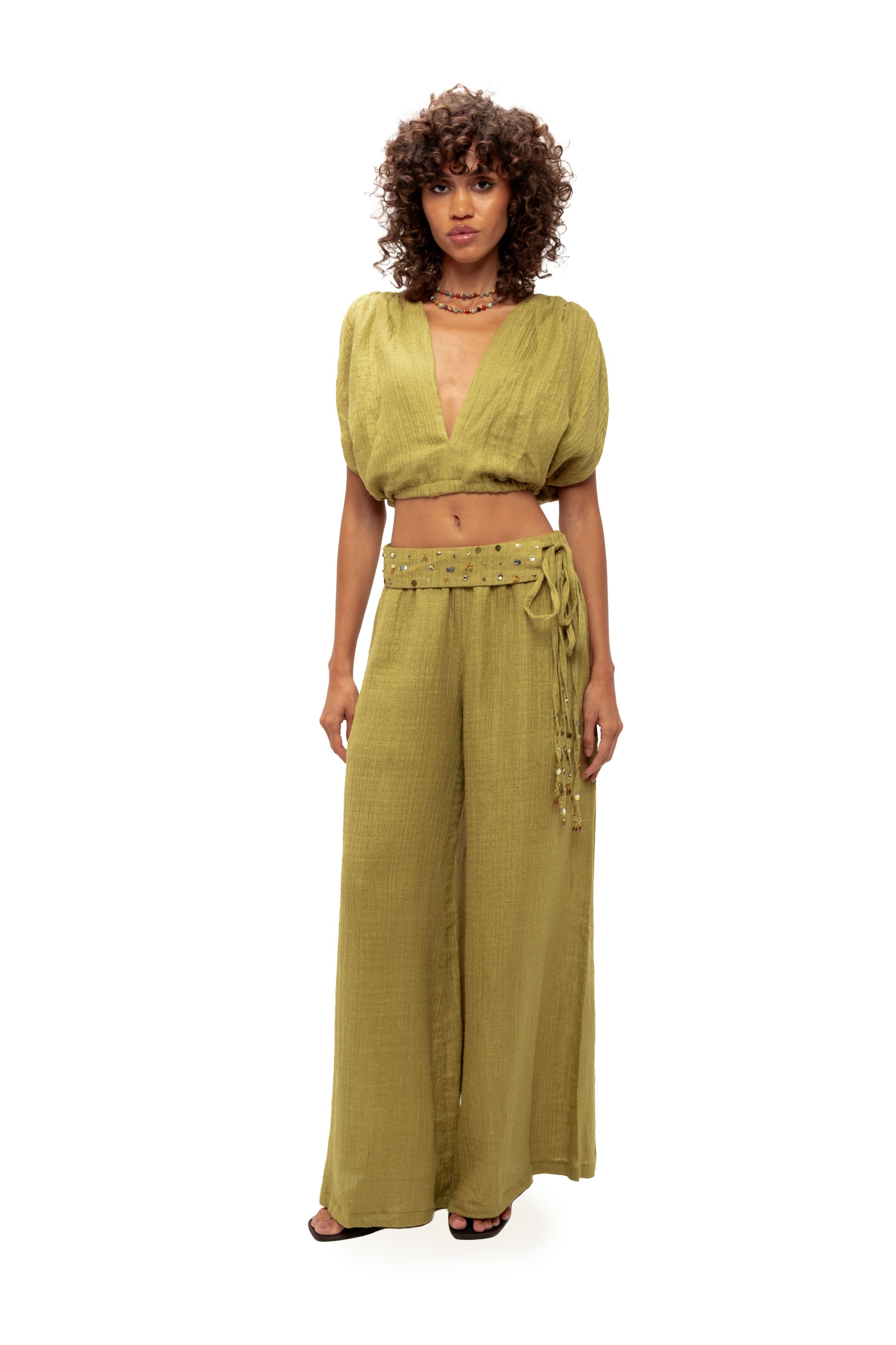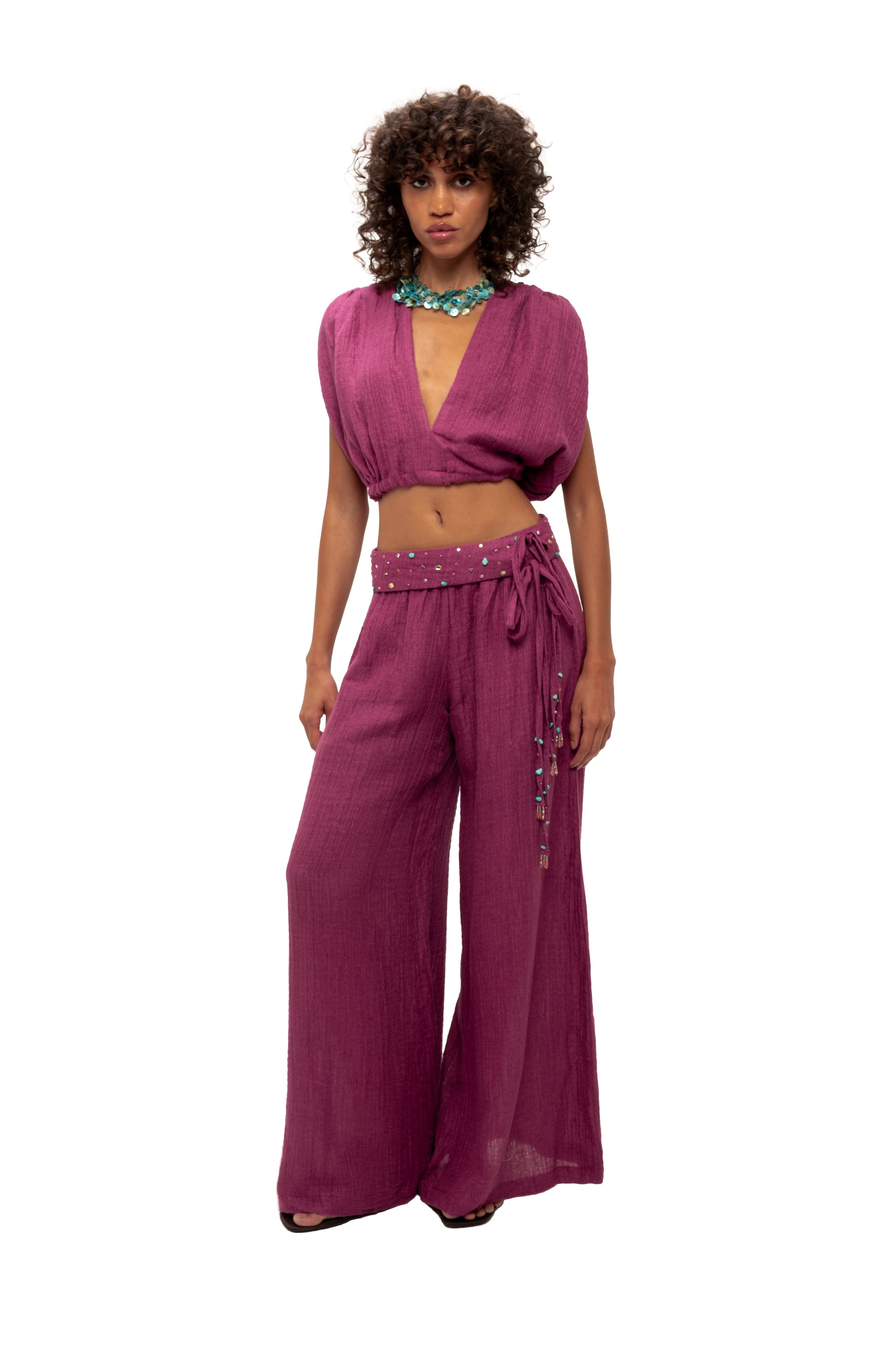 - Adjustable drawstring cropped waist